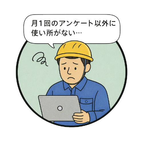 「アンケート以外使うところがない...」「月1回しかシステムを活用していない...」